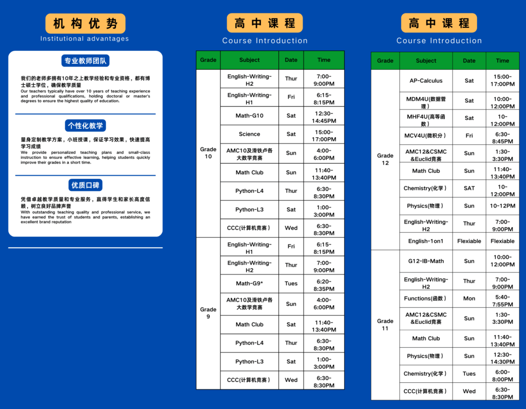 一对一VIP课程;一对多,小组课程;线下传统课程; Continue Reading